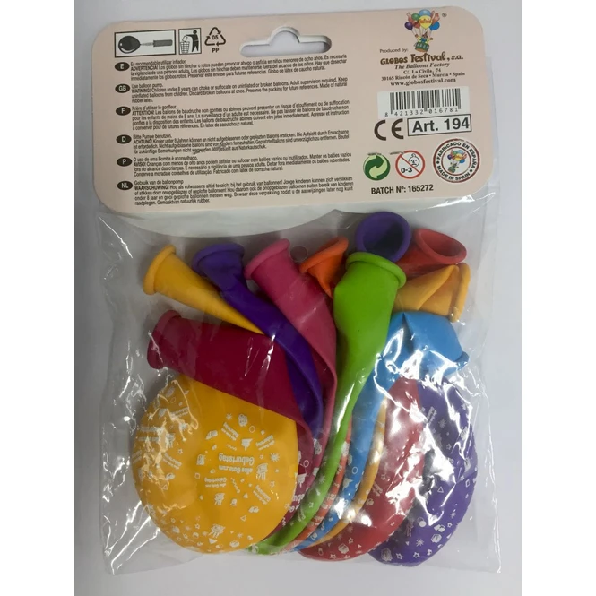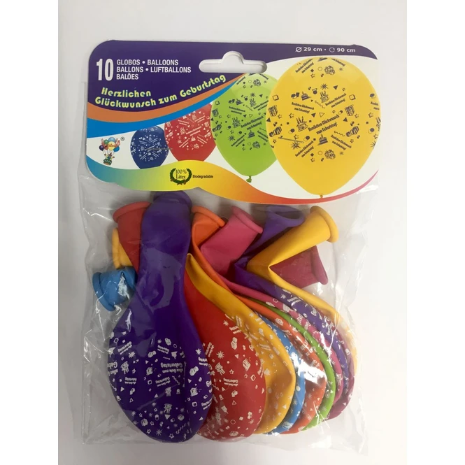 - 10 bunte Luftballons mit dem Aufdruck „Happy Birthday“