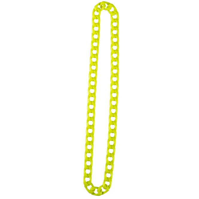 All diejenigen, die auf der Suche nach passendem Kostümzubehör für ihr Kostüm sind und keine Lust auf langeweilige Standards haben, kommen mit dieser Statement-Kette vollends auf ihre Kosten! Diese springt durch die großen Glieder sofort ins Auge und ist auf jeden Fall das i-Tüpfelchen eures närrischen Outfits. Sie kommt in Einheitslänge für Erwachsene daher und ist vor allem aufgrund der Neonfarbe ein echter Blickfänger. Dadurch, dass sich die tolle Gliederkette mühelos mit den unterschiedlichsten Kostümen kombinieren lässt, sind eurer Fantasie beim Kombinieren fortan auch keinerlei Grenzen mehr gesetzt. Also schnappt sie euch und erlebt grenzenlosen Partyspaß!