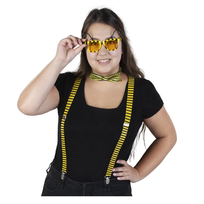 All diejenigen, die sich in der fünften Jahreszeit gerne kreativ austoben und unvergessliche Kostümfeiern erleben möchten, kommen mit dem tollen Faschingsset – Biene vollends auf ihre Kosten! Dieses ist nicht nur die ideale Ergänzung für euer Bienenkostüm, sondern es eignet sich darüber hinaus auch ideal, um vollkommen nach Belieben in Szene gesetzt zu werden. Es besteht aus Polyester, ist 3-teilig und beinhaltet Hosenträger, eine Fliege sowie eine Brille, die das i-Tüpfelchen eures reizenden Outfits ist. Also schnappt euch das praktische Kostümzubehör und munter drauflos feiern!