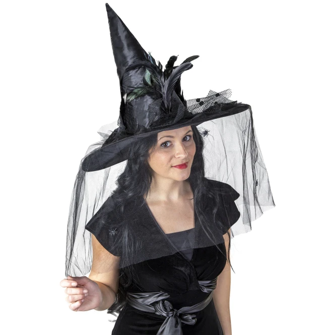 Eine standesgemäße Verkleidung gehört an Halloween oder Fasching zum absoluten Standard und darf auch von Ihnen keineswegs vernachlässigt werden. Hat man sich erst für ein Kostüm entschieden, gilt es die passenden Accessoires dafür zu finden. Wenn Sie zu diesen Anlässen Ihr Inneres endlich einmal nach außen kehren und eine waschechte Hexe darstellen möchten, darf Ihnen dieses Stück keineswegs fehlen! Der stattliche Hexenhut eignet sich dank der aufwendigen Gestaltung nämlich hervorragend, um Ihr düsteres Outfit stilecht zu komplettieren und mühelos alle Blicke auf sich zu ziehen. Er besteht aus Polyester, ist XXX cm hoch und vor allem aufgrund des geheimnisvollen Schleiers, der gruseligen Spinnen sowie filigranen Federn das absolute Highlight. Mit dem schaurigen Hut gelingt es Ihnen mit Leichtigkeit, schier magische Nächte zu erleben und dem einen oder anderen Herren gehörig den Kopf zu verdrehen. Also einfach aufziehen und unvergesslichen Partyspaß erleben!