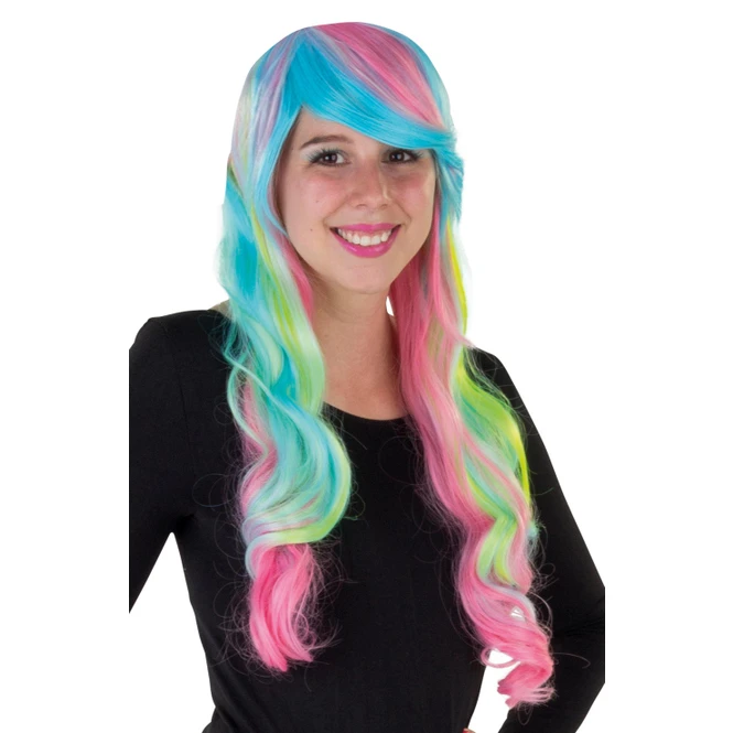 Extravagante Partyfans, aufgepasst! Wenn ihr nicht genug von außergewöhnlichen Kostümen bekommt und auf der Suche nach ebenso ausgefallenen Accessoires seid, haben wir hier genau das Richtige! Die lustige Langhaarperücke zaubert euch im Handumdrehen eine lockige Wallemähne, mit der ihr ganz sicher zu einem echten Augenschmaus werdet. Sie ist brustlang und vor allem dank dem kunterbunten Farbverlauf ein fröhliches Highlight, welches sich hervorragend dazu eignet, um euch ordentlich aus der Menge der Feierwütigen herausstechen zu lassen. Also schnappt euch die tolle Regenbogen-Perücke und erlebt farbenfrohe Partynächte!