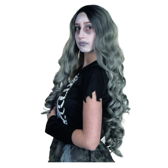 Langhaarperücke für Erwachsene – Schwarz/grau
