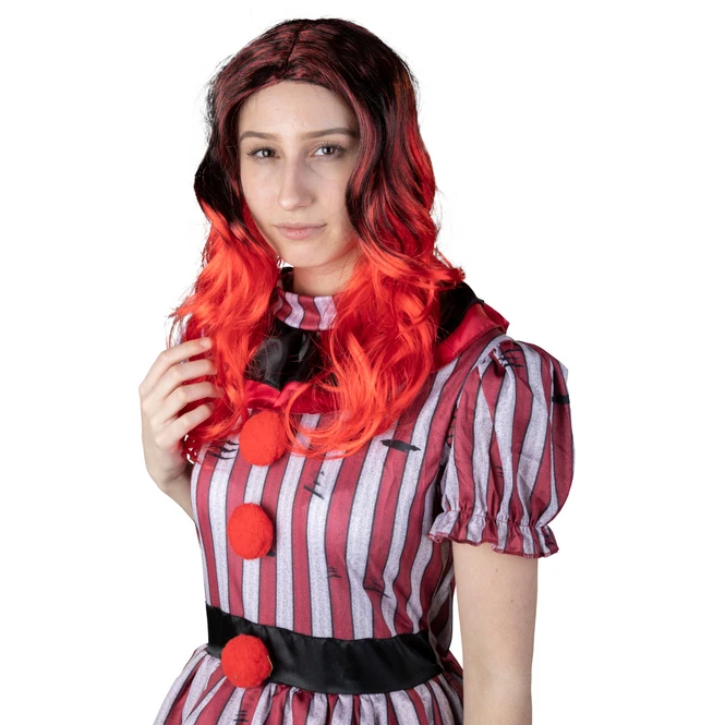 Langhaarperücke schwarz/rot – für Erwachsene
