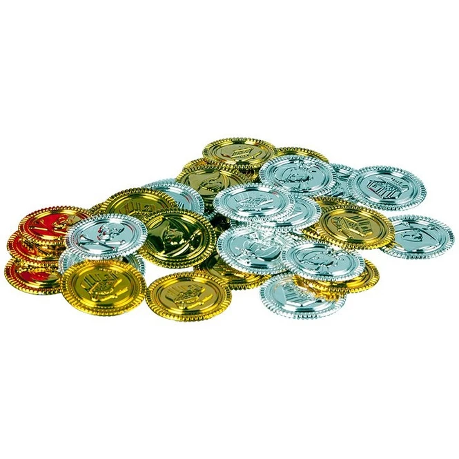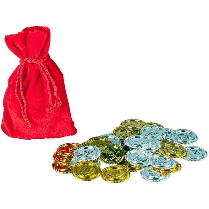 Ihr habt großen Spaß daran, euch in der närrischen Zeit standesgemäß zu verkleiden und seid auf der Suche nach passenden Accessoires für euer Piratenkostüm? Dann haben wir hier genau das Richtige! Die authentisch gestalteten Piratenmünzen sind einfach unerlässlich, wenn ihr einen waschechten Helden der Meere darstellen möchtet. Diese sind nämlich nicht nur ein echter Blickfänger, sondern zudem auch das ideale Zubehör für unvergessliche Piratenpartys! Sie bestehen aus Kunststoff, werden in einem praktischen Stoffbeutel geliefert und machen insbesondere dank der silber- und gold-glänzenden Farbe einen hochwertigen Eindruck. Somit sind die tollen Münzen die ideale Ergänzung für ein jedes Piratenkostüm (separat erhältlich) und für unvergessliche Partynächte einfach unverzichtbar.