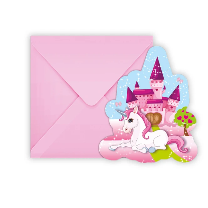 6 Einladungskarten – Einhorn – mit Umschlag
