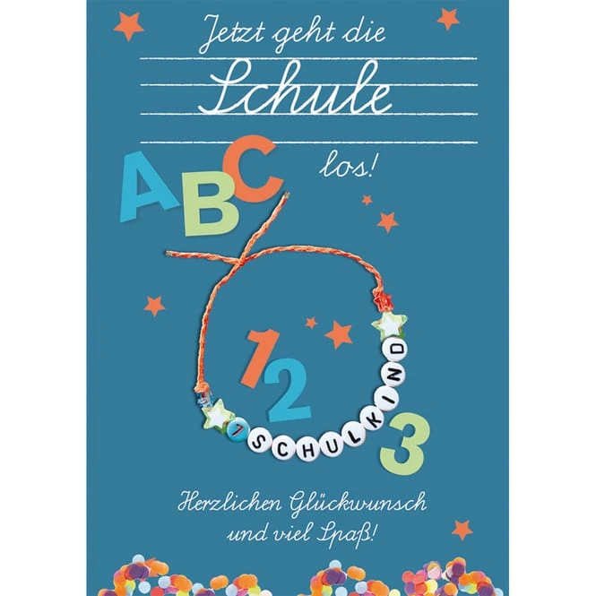- Schriftzug: Jetzt geht die Schule los! Herzlichen Glückwunsch und viel Spaß!